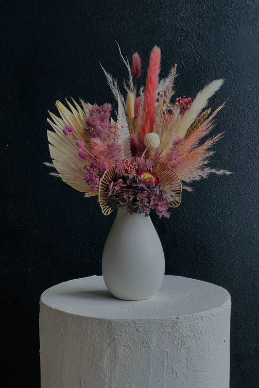 Immerse yourself in the enchanting world of dried flowers through our stunning arrangements and distinct handmade jewelry pieces.